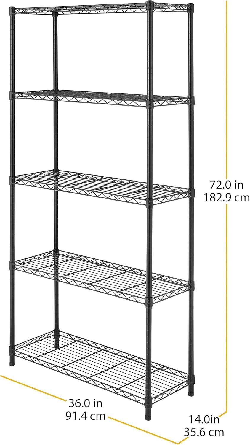Whitmor 3-Wire Shelving Unit, Metal Storage Shelves, Easy Assembly Home Organizer for Pantry, Kitchen, Garage, Plant(5-tier 36″l X 14″w X 72″h)