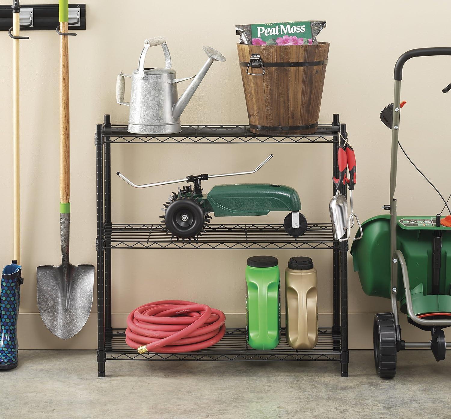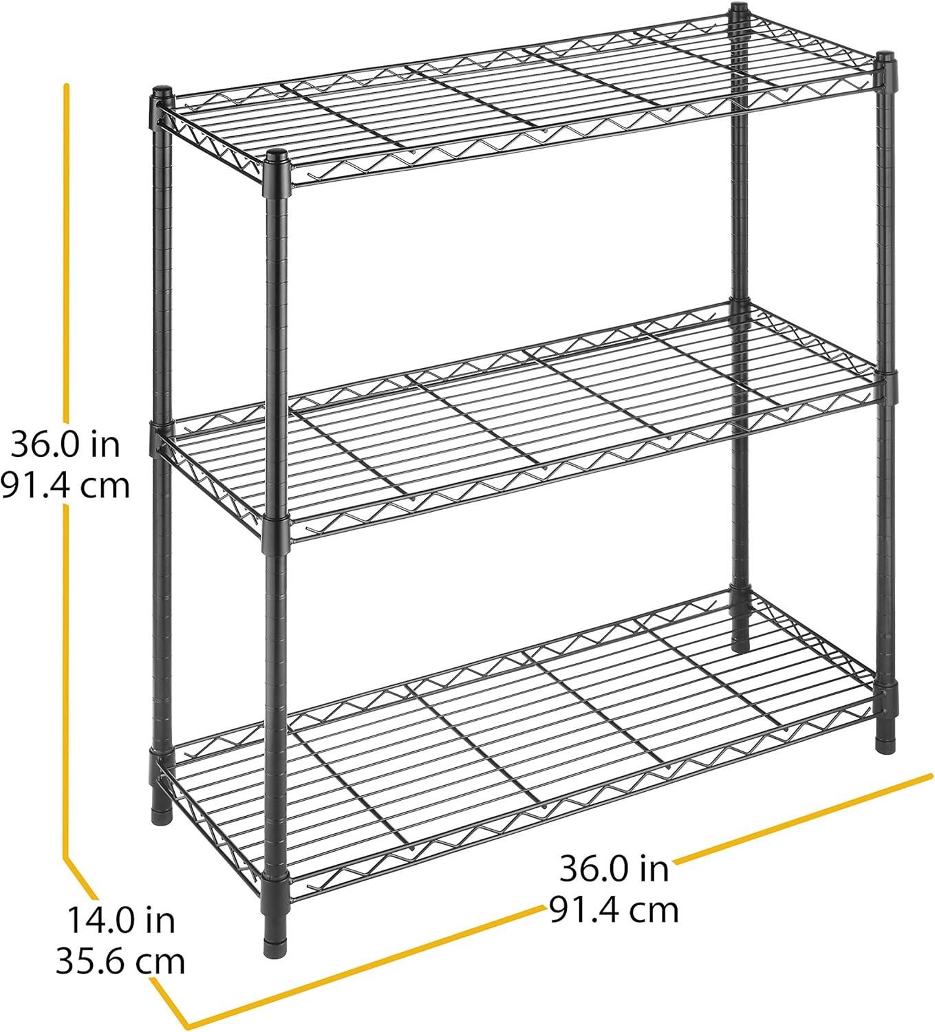 Whitmor 3-Wire Shelving Unit, Metal Storage Shelves, Easy Assembly Home Organizer for Pantry, Kitchen, Garage, Plant(Black)