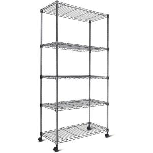 Whitmor 3-Wire Shelving Unit, Metal Storage Shelves, Easy Assembly Home Organizer for Pantry, Kitchen, Garage, Plant(5-tier 30″l X 14″w X 60″h (With Wheels))