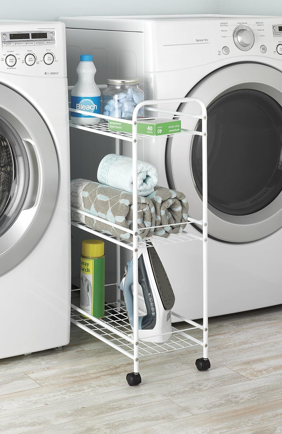 Whitmor Slim Rolling Household Cart – White 30.50 x 9.25 x 20.75(20.75″L x 9.25″W x 30.5″H)