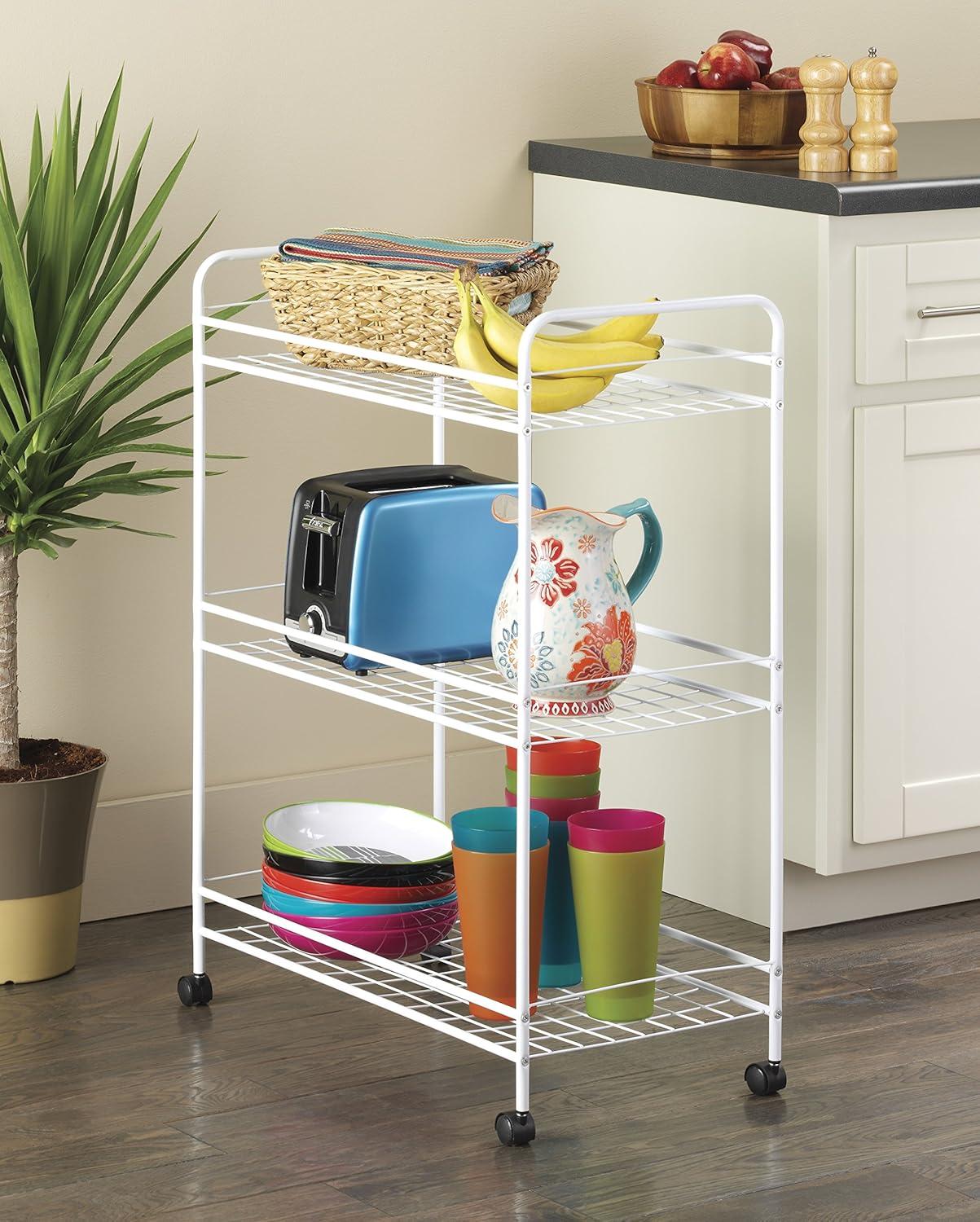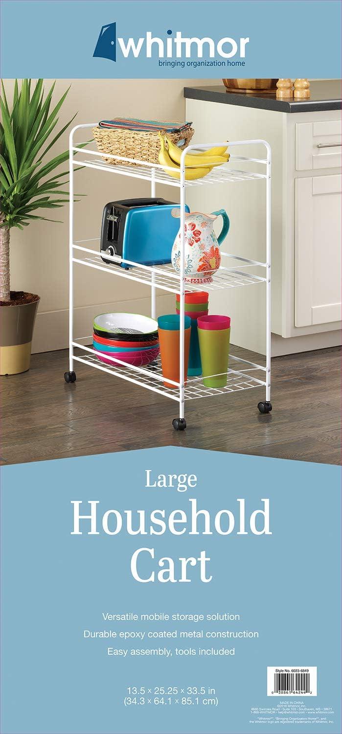 Whitmor Slim Rolling Household Cart – White 30.50 x 9.25 x 20.75(25.25″L x 13.5″W x 33.5″H)