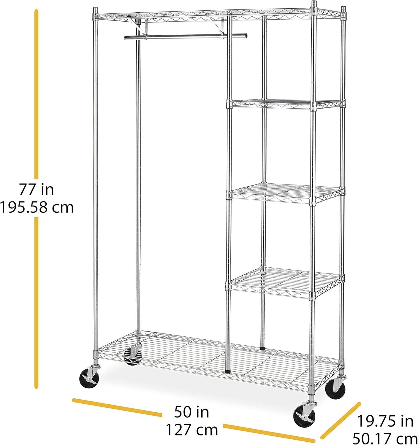 Whitmor Foldable Garment Rack – Rolling Clothes Rack – Adjustable Height – Silver(44 x 20 x 71 inch Double Rod)