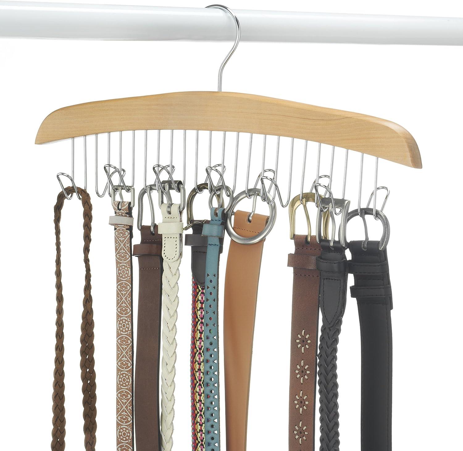 Whitmor Wood Belt Hanger, Natural/Chrome
