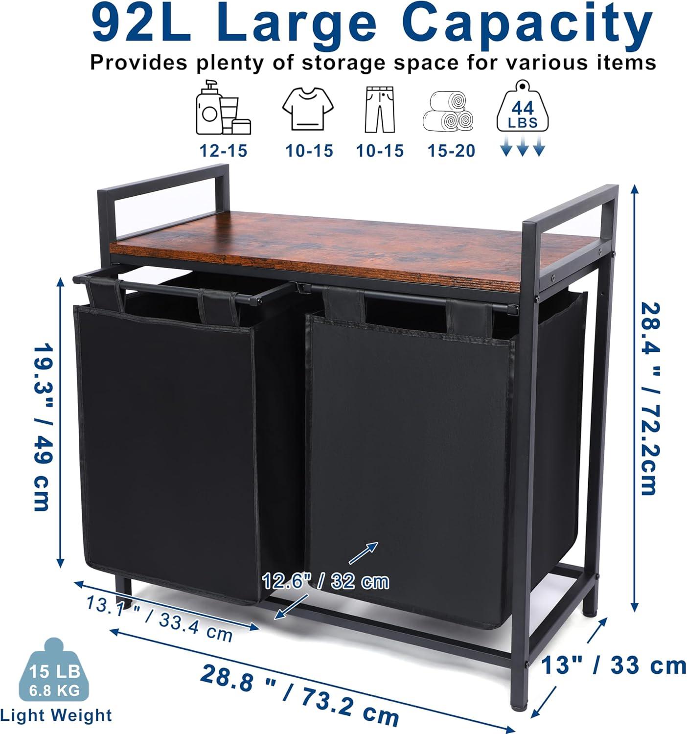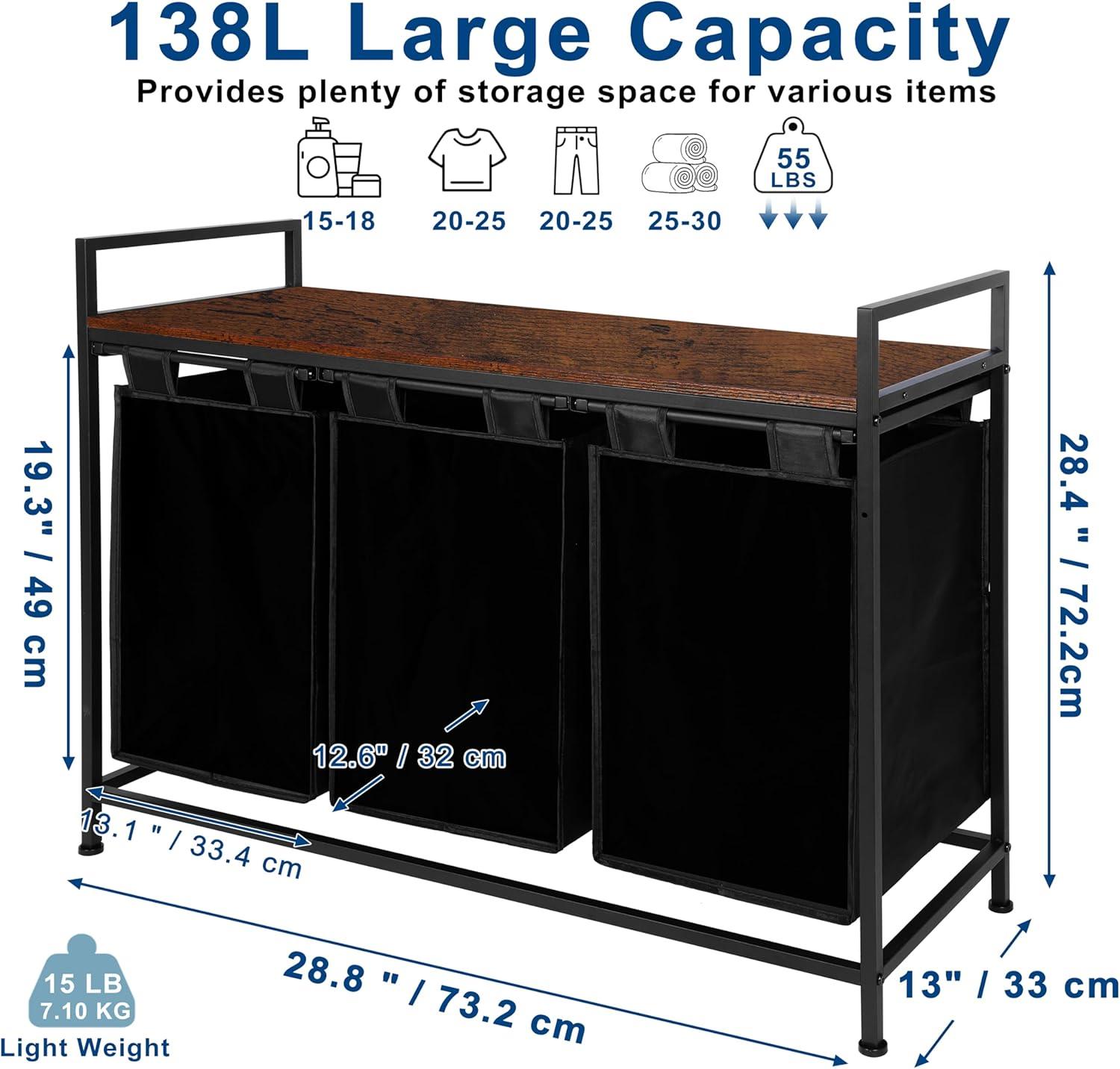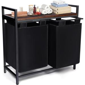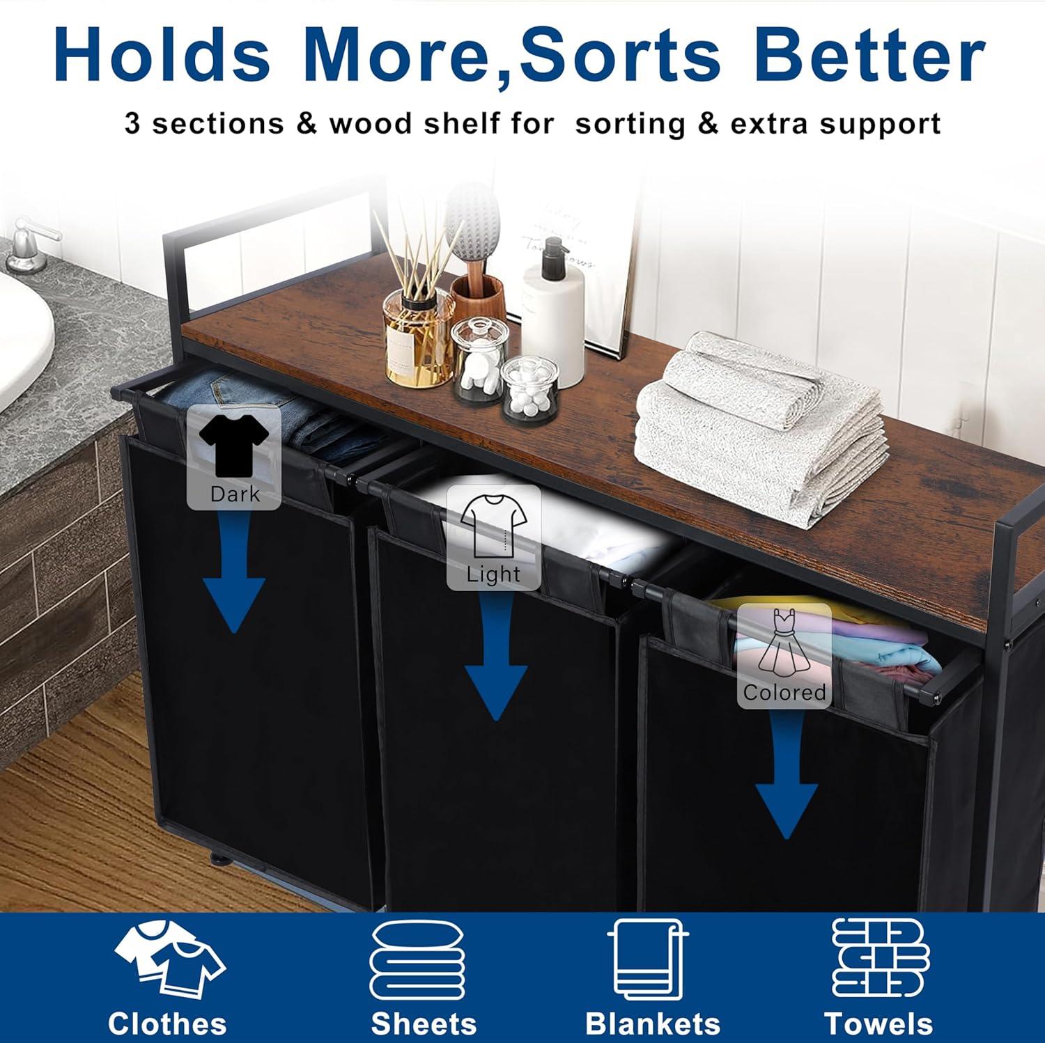 Whitmor 3 Section Laundry Sorter with Wheels – Black(Black)