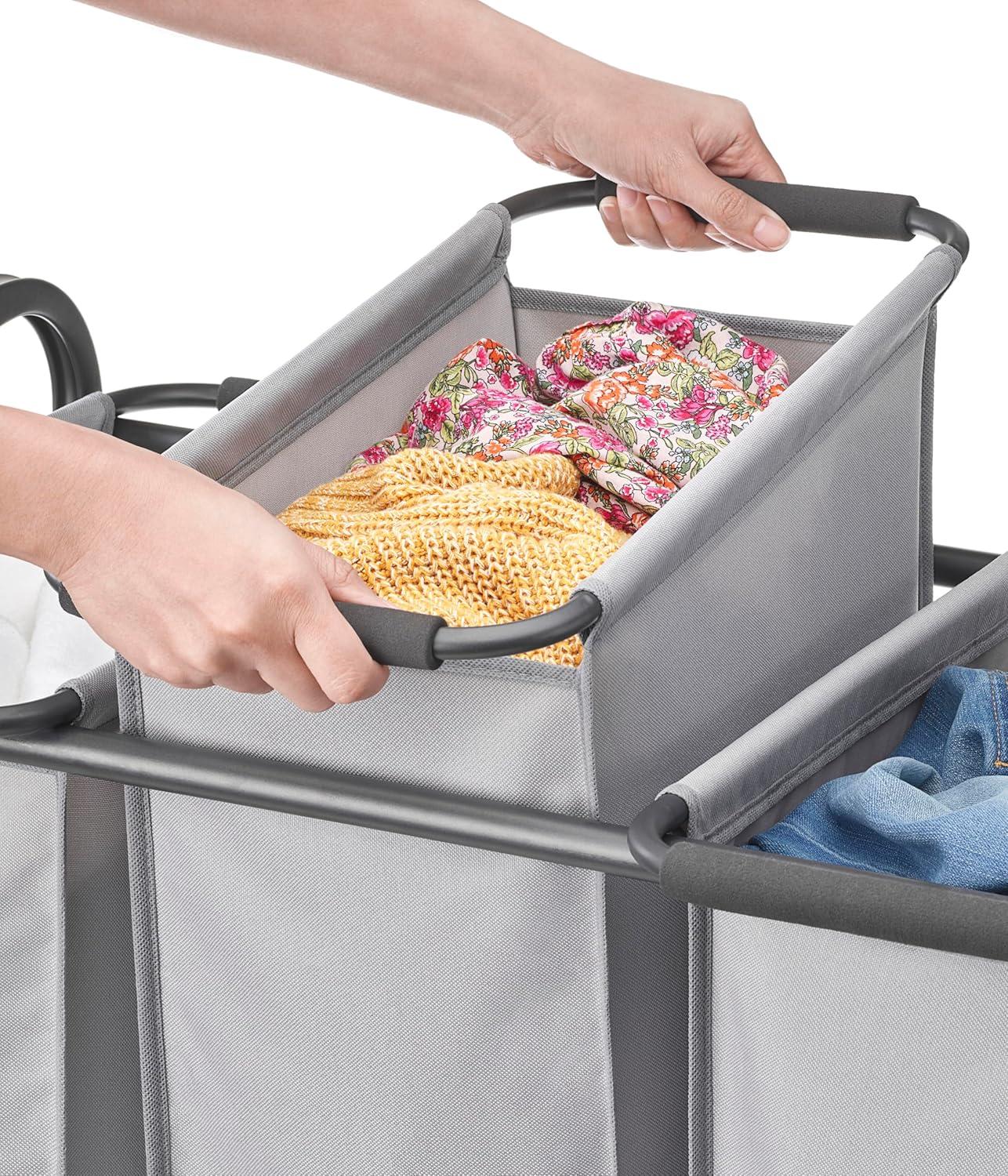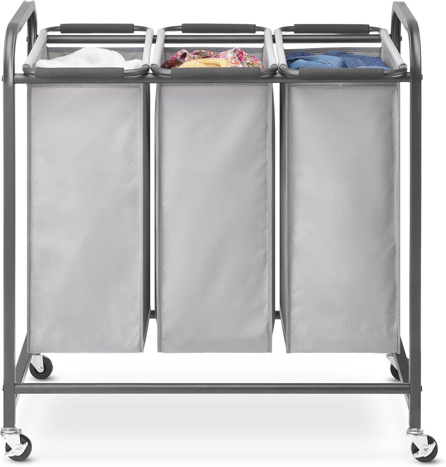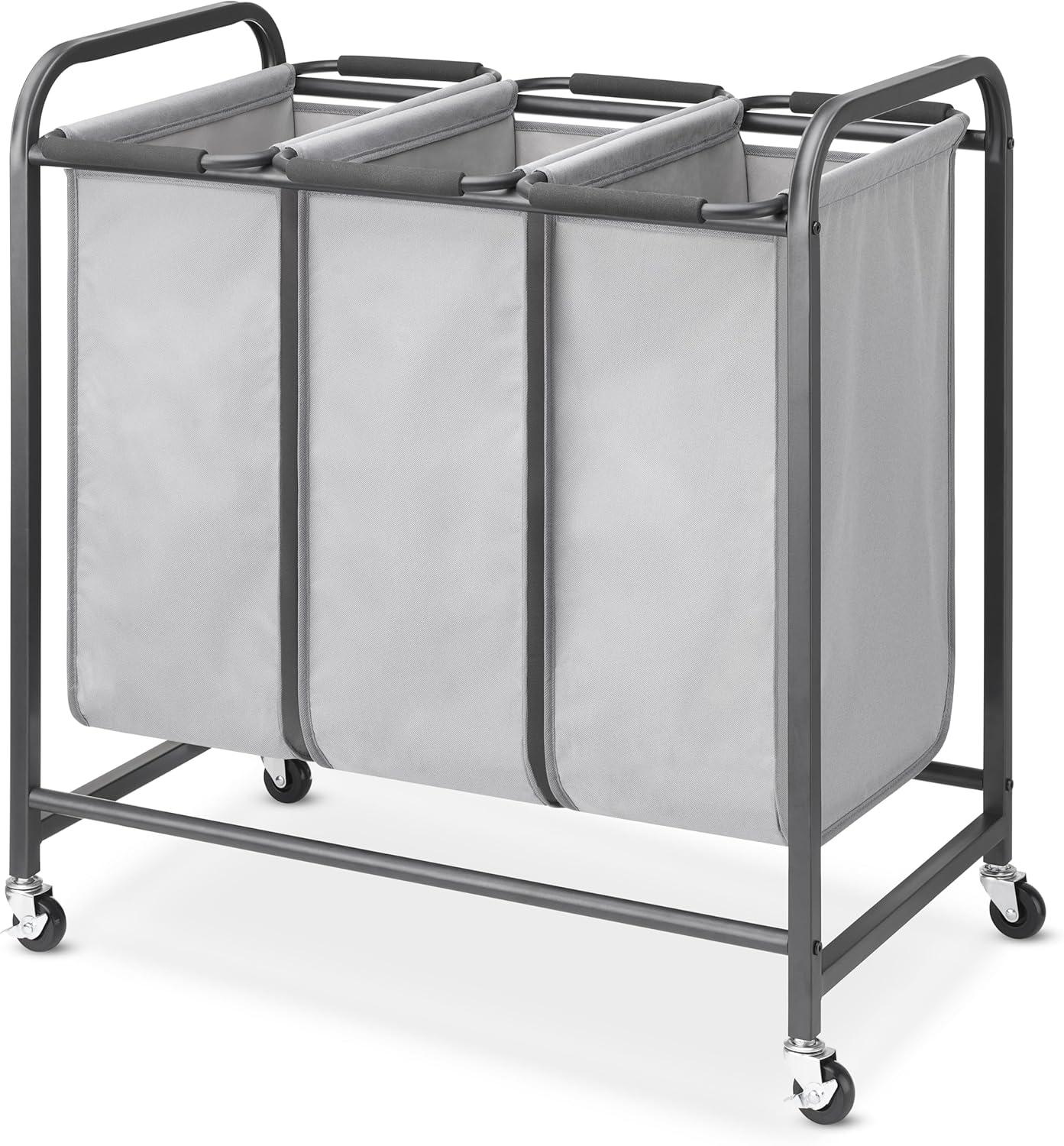 Whitmor 3 Section Laundry Sorter – Collapsible with Heavy Duty Wheels(White)