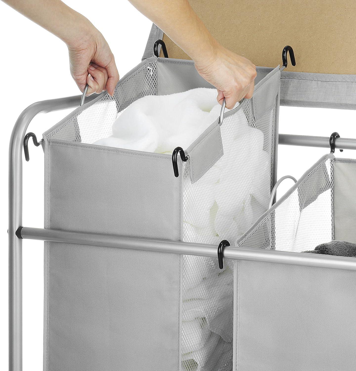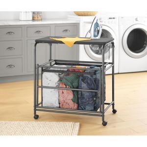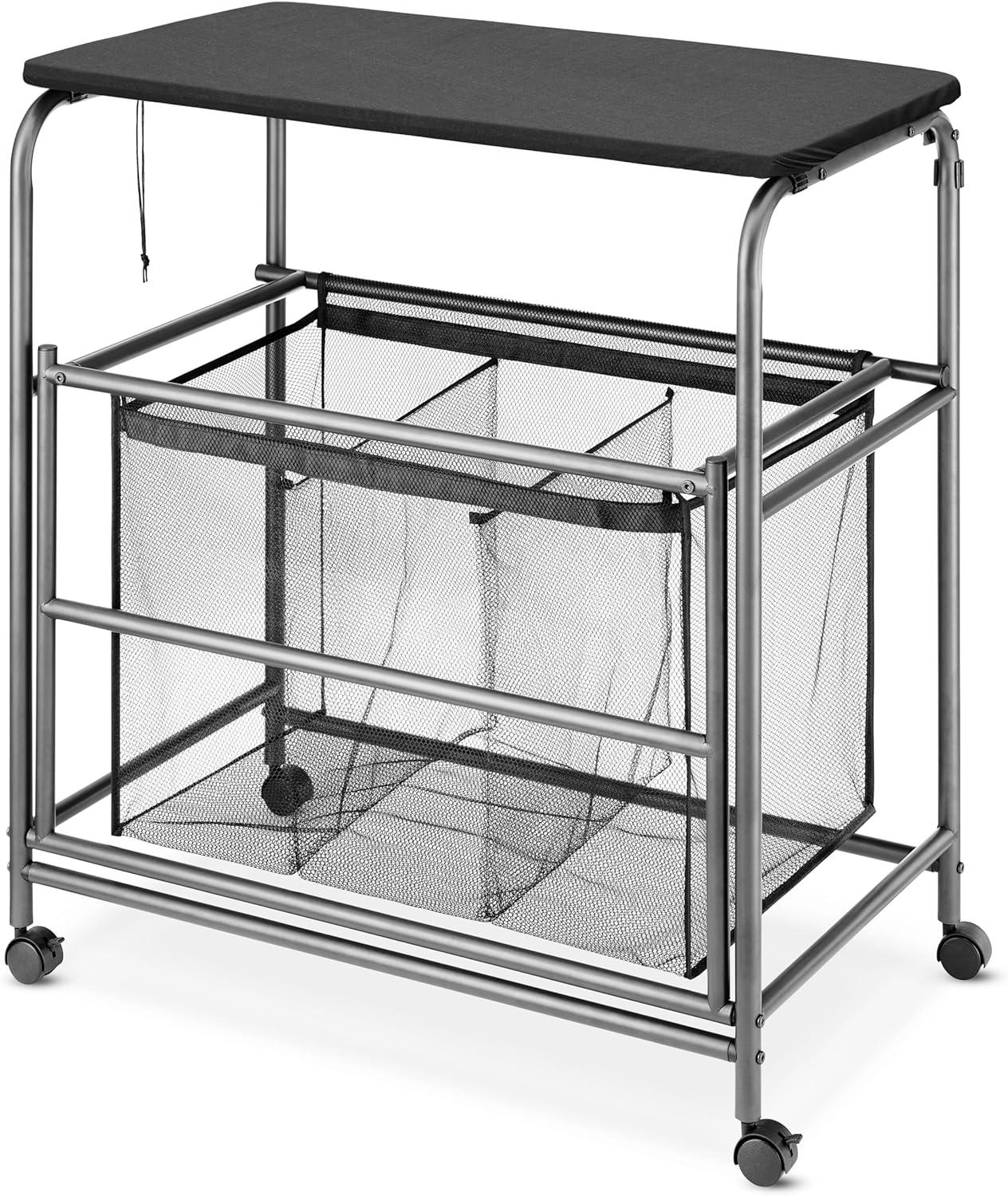 Whitmor 3 Section Rolling Laundry Sorter with Folding Station – Ironing Board, Chrome / Gray(2 Section,Black)