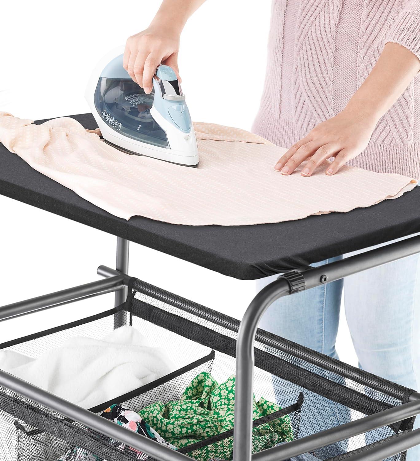 Whitmor 3 Section Rolling Laundry Sorter with Folding Station – Ironing Board, Chrome / Gray(3 Section lroning Board,Black)