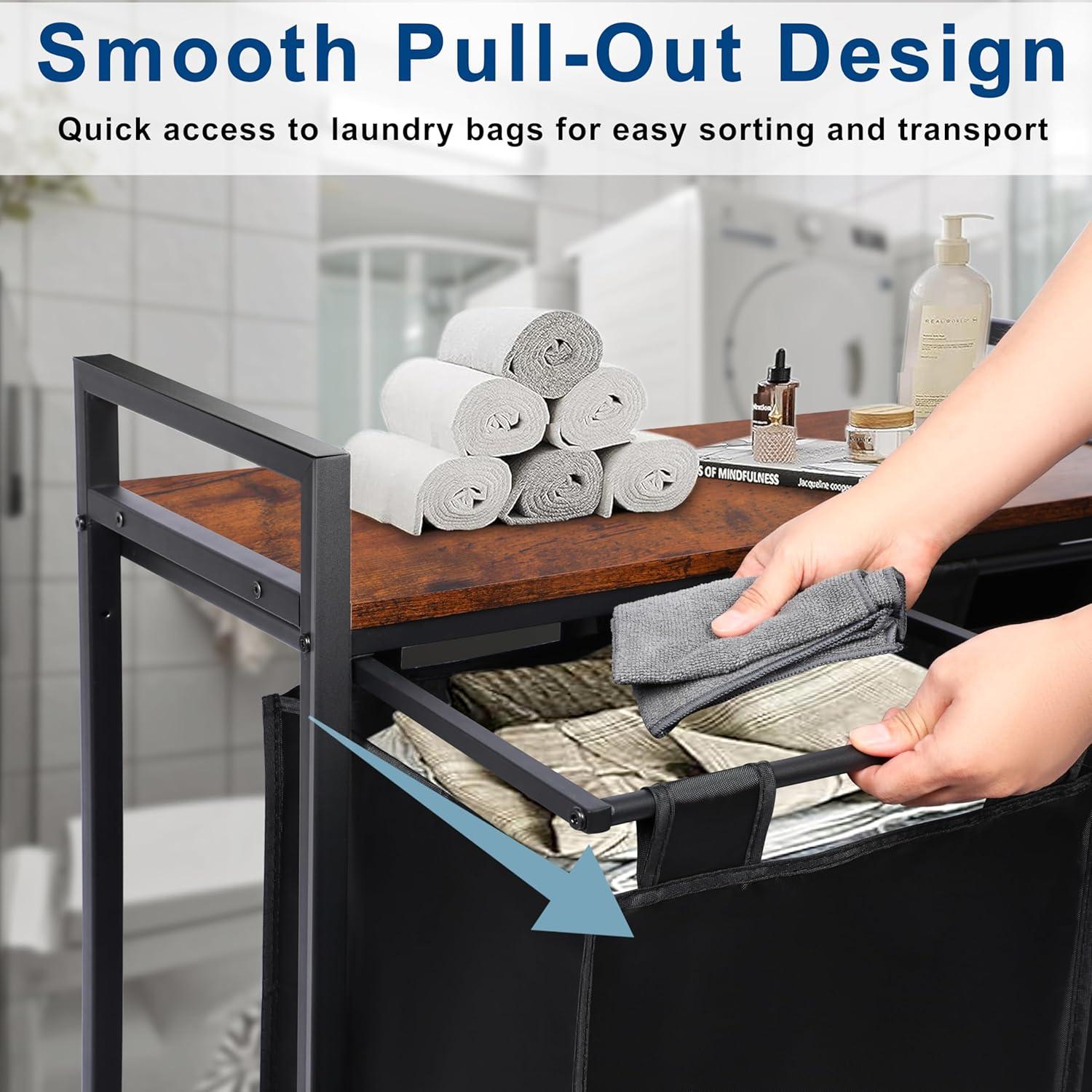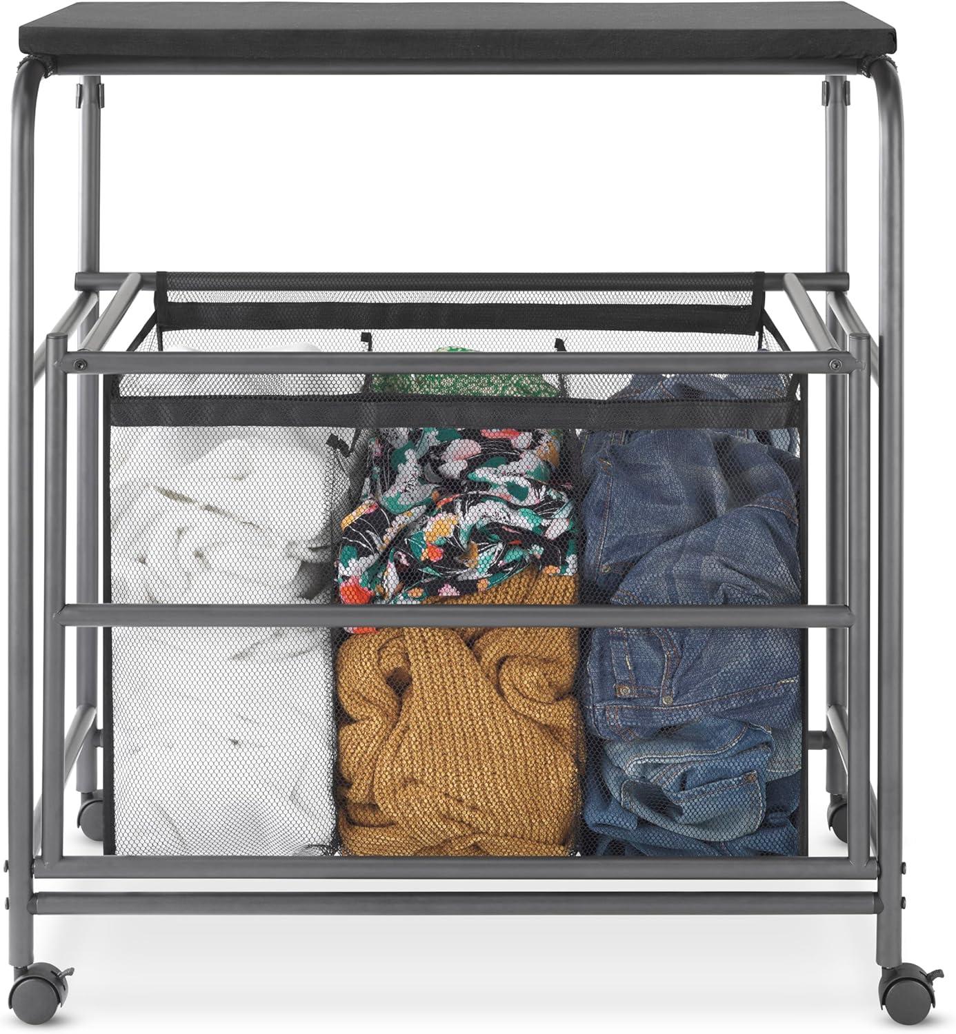 Whitmor 3 Section Rolling Laundry Sorter with Folding Station – Ironing Board, Chrome / Gray(3 Section,Black)