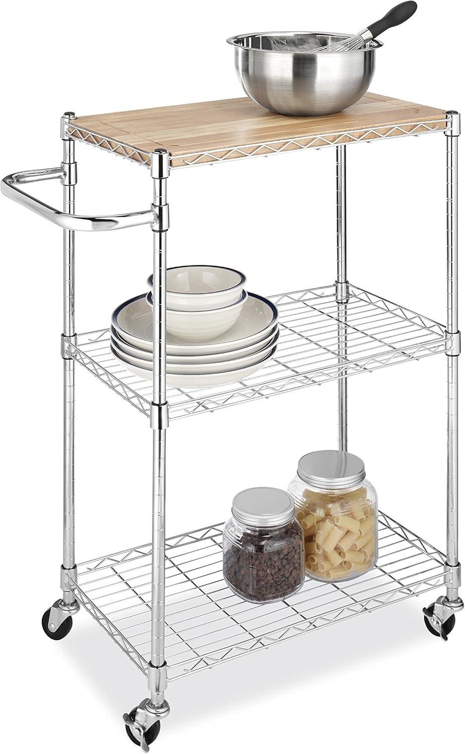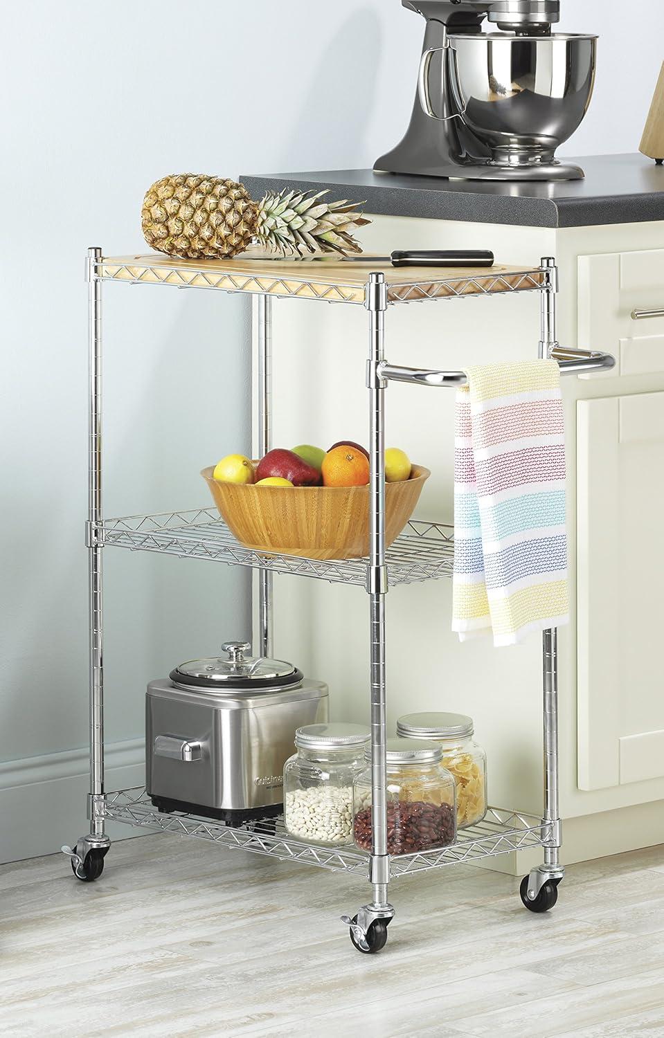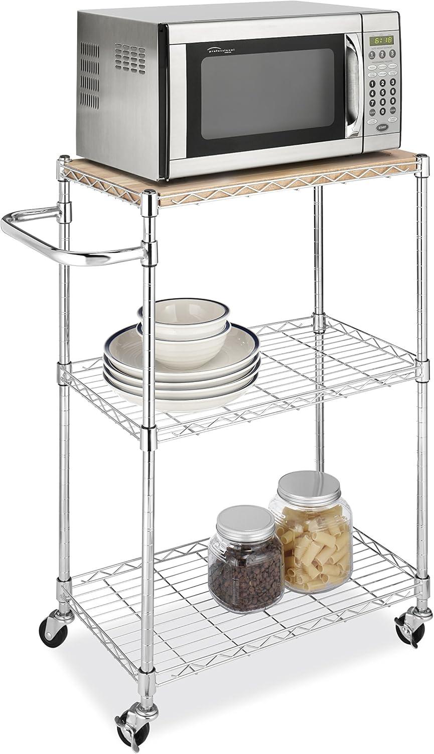 Whitmor 3 Tier Shelving Unit, Metal Storage Shelves, Adjustable Heavy Duty Shelf with Wheels , 400 lbs Capacity per Shelf, 1200 lbs Total for Home, Garage, Workshop, 23″L x 13″W x 30″H, Chrome(1-TIER 15″L x 14″W x 15″H)
