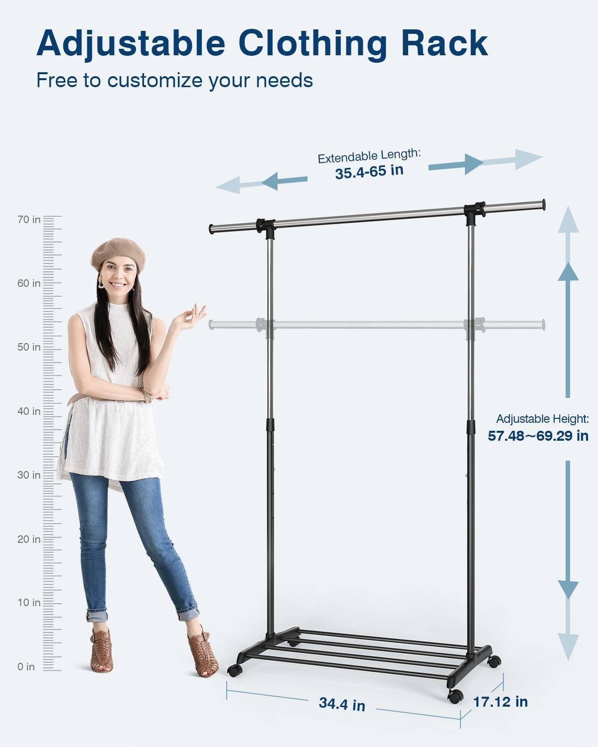 Whitmor Deluxe Adjustable Garment Rack – Rolling Clothes Organizer – Black and Chrome