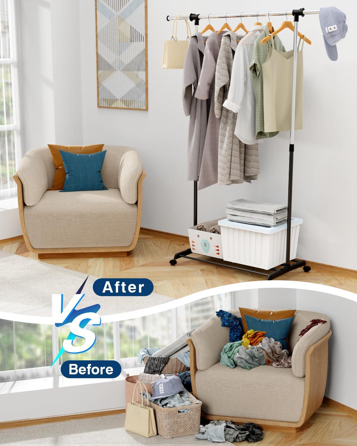 Whitmor Adjustable Garment Rack Rolling Clothes Organizer, Black and Chrome