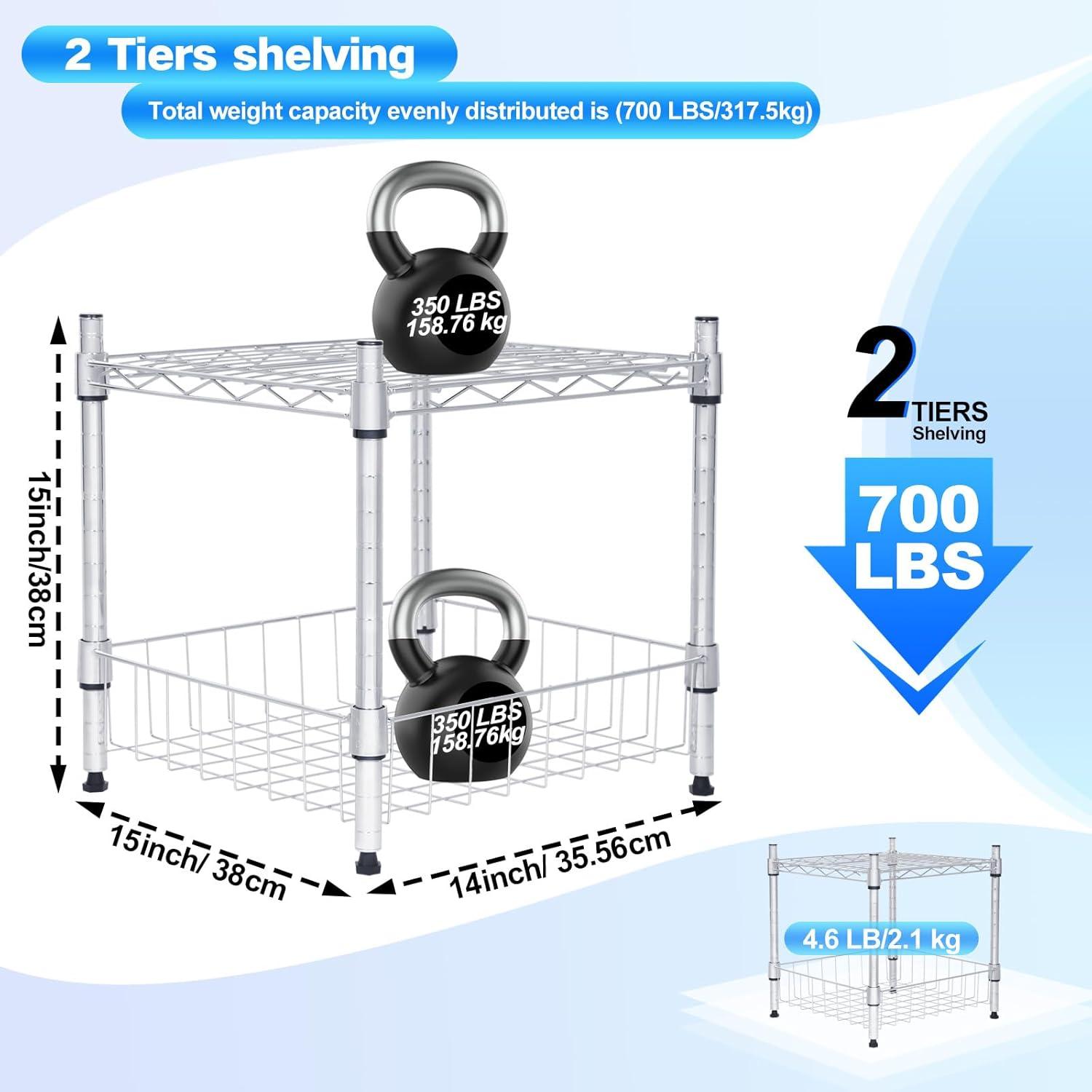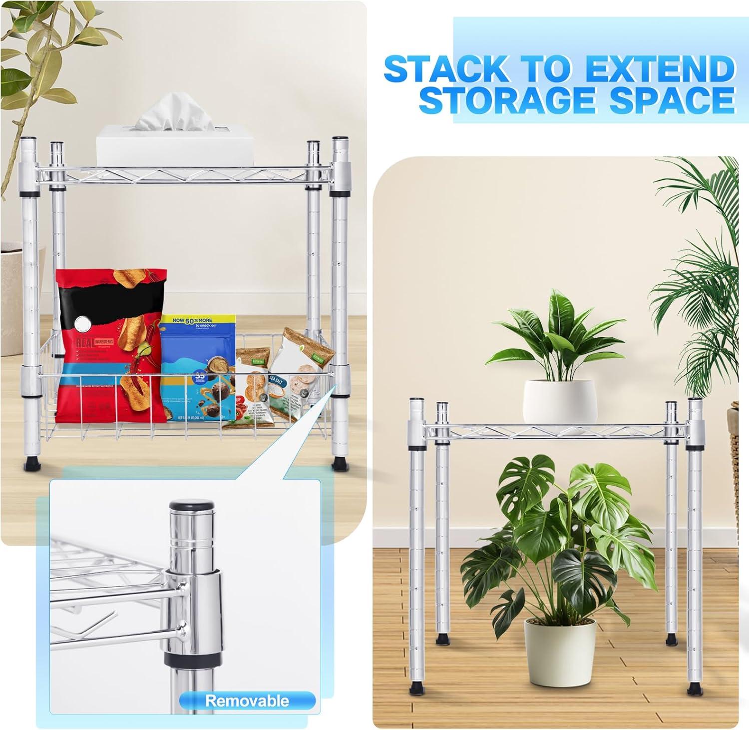 Whitmor 3-Wire Shelving Unit, Metal Storage Shelves, Easy Assembly Home Organizer for Pantry, Kitchen, Garage, Plant(2-tier 15″l X 14″w X 15″h chrome)
