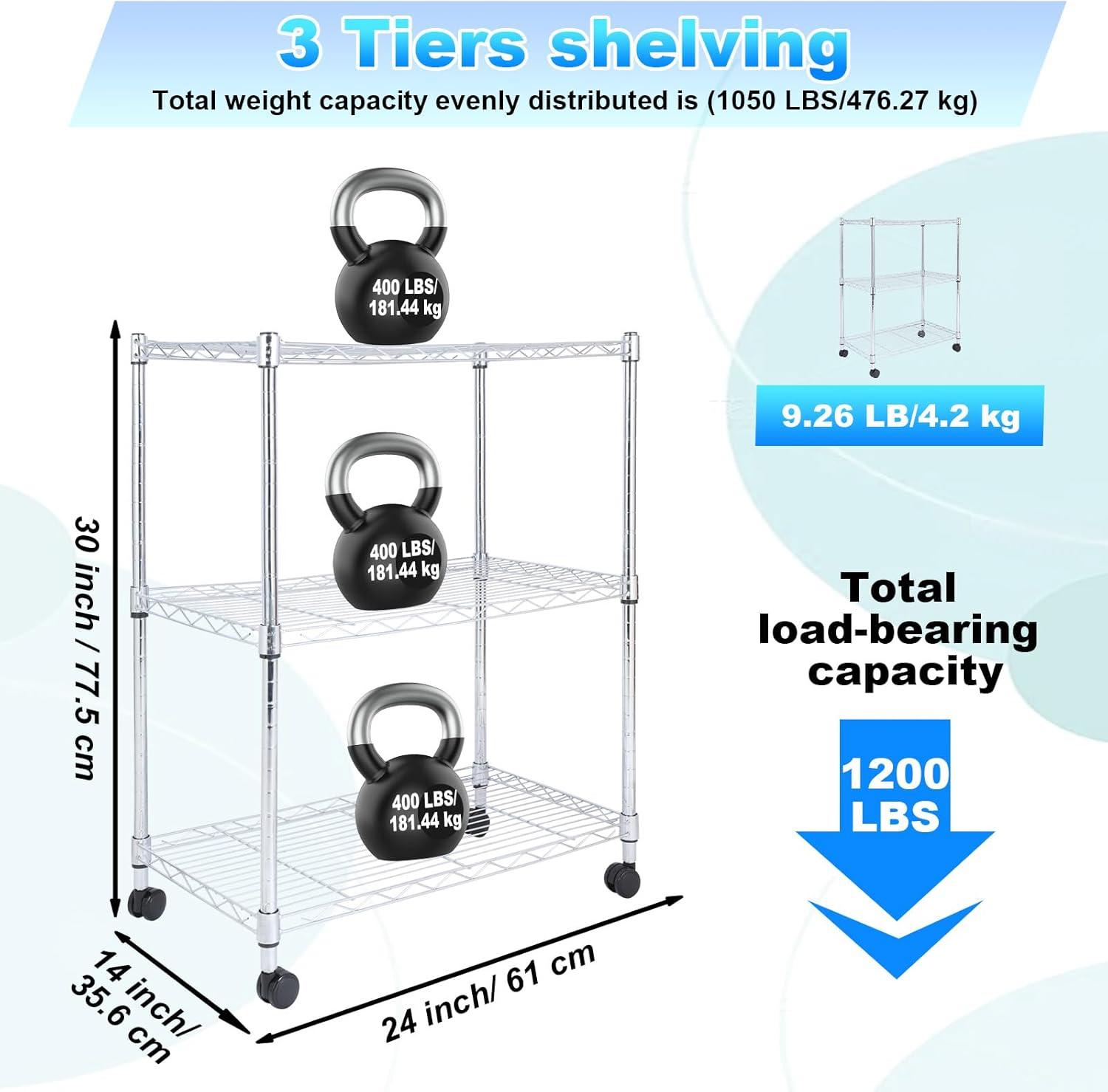 Whitmor 3-Wire Shelving Unit, Metal Storage Shelves, Easy Assembly Home Organizer for Pantry, Kitchen, Garage, Plant(3-tier 24″l X 14″w X 31″h)