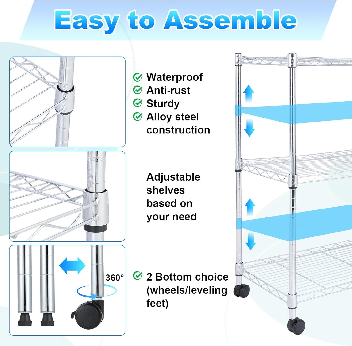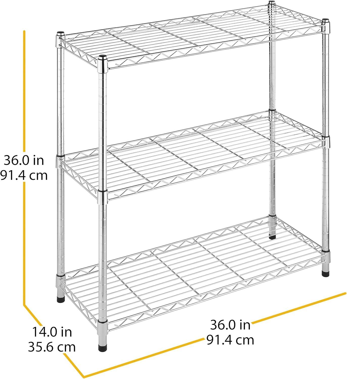 Whitmor 3-Wire Shelving Unit, Metal Storage Shelves, Easy Assembly Home Organizer for Pantry, Kitchen, Garage, Plant(3-tier 36″l X 14″w X 36″h chrome)