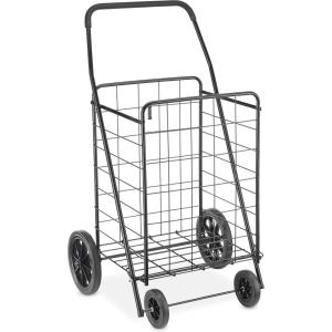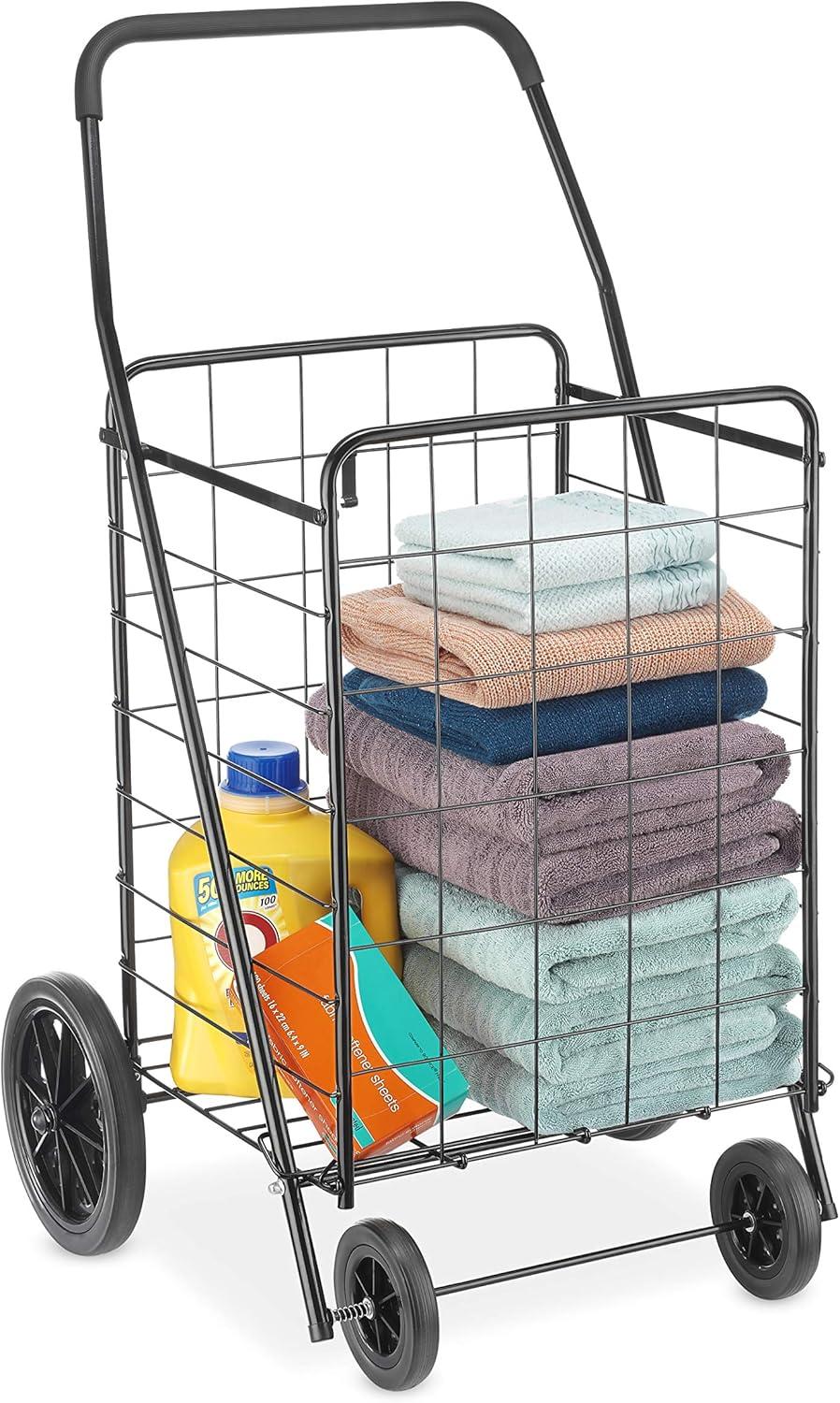 Whitmor Extra Large Utility Foldable Shopping Cart with Wheels, 100 Lb Capacity, Heavy Duty Grocery Cart with Steel Frame, Foam Handle, Rolling Collapsible Utility Trolley for Grocery, Laundry, Black