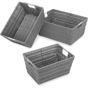 Whitmor Rattique Storage Baskets – Grey (3 Piece Set)(Grey)