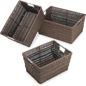 Whitmor Rattique Storage Baskets – Grey (3 Piece Set)(Brown)