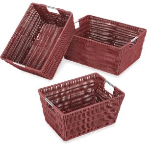 Whitmor Rattique Storage Baskets – Grey (3 Piece Set)(Red)