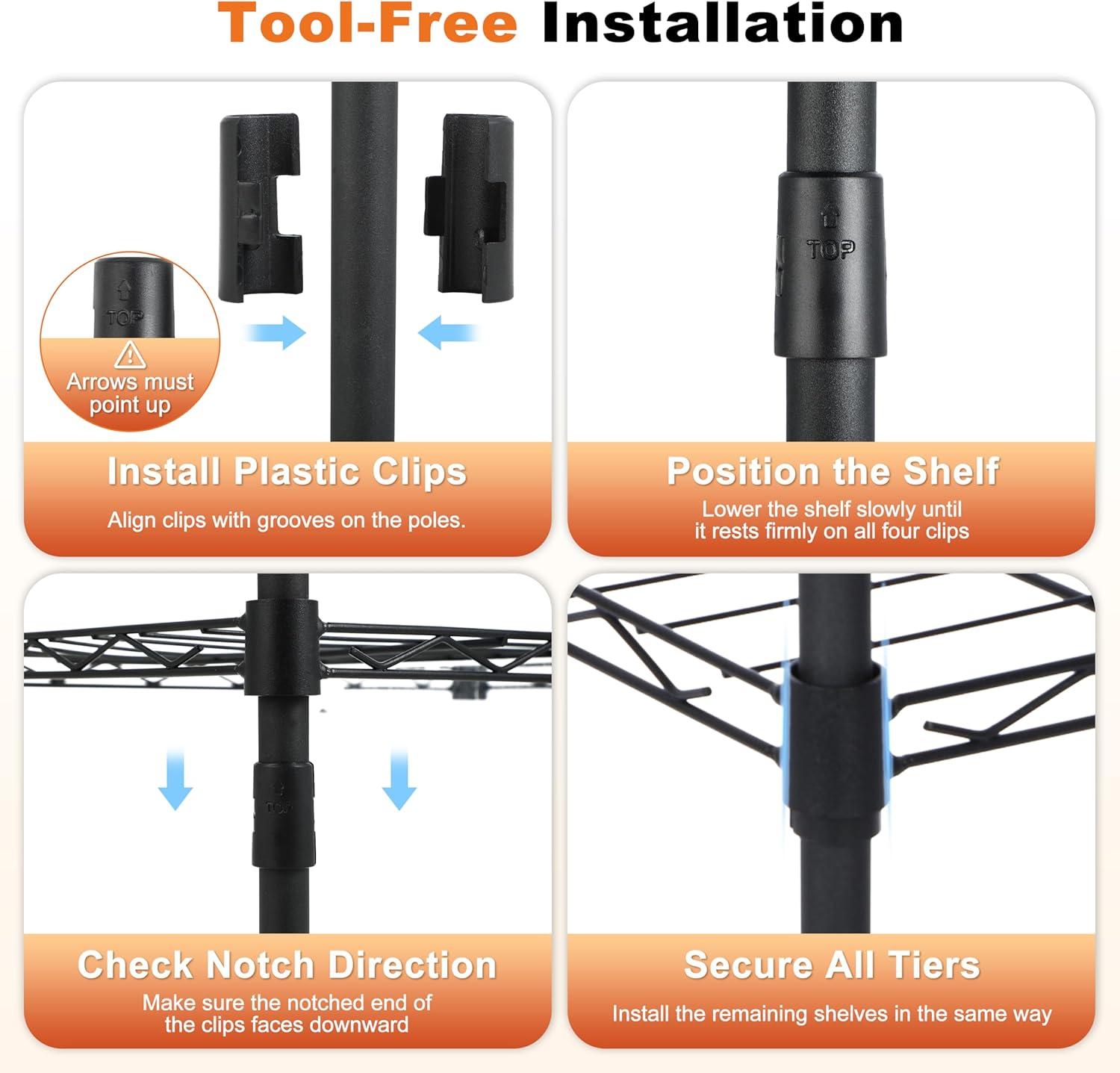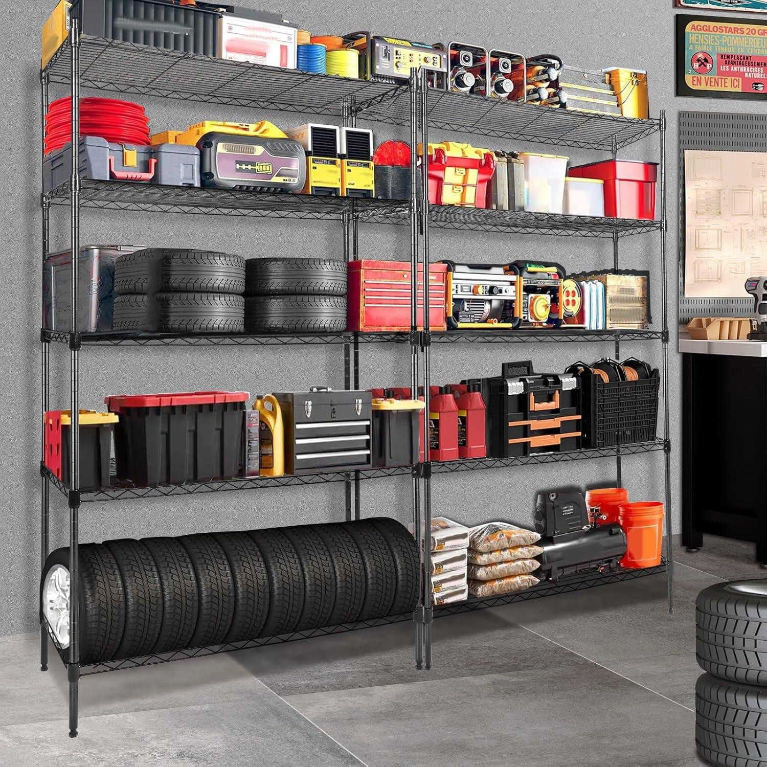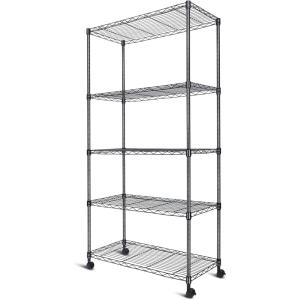 Whitmor Supreme 5 Tier Adjustable Shelving – 500 Pound Weight Capacity Per Shelf – Leveling Feet(Black)