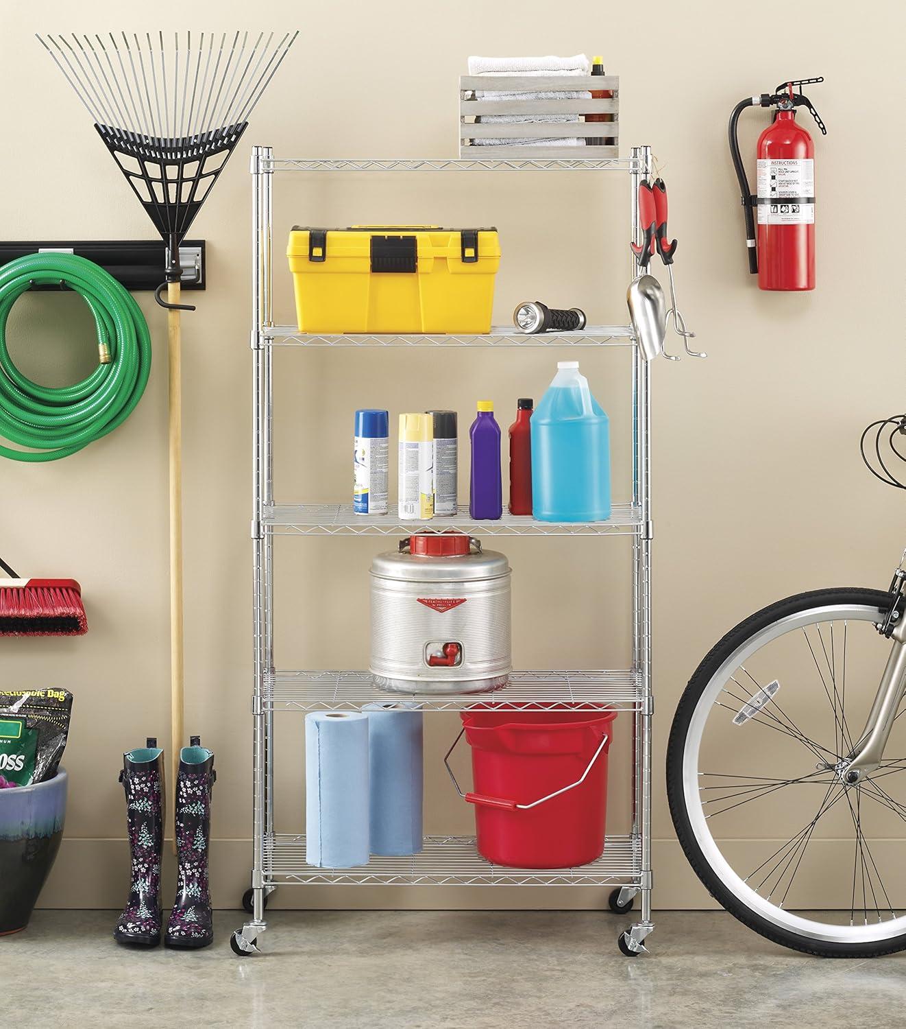 Whitmor Supreme 5 Tier Adjustable Shelving – 500 Pound Weight Capacity Per Shelf – Leveling Feet(4-tier 36″l X 18″w X 59″h (With Wheels))