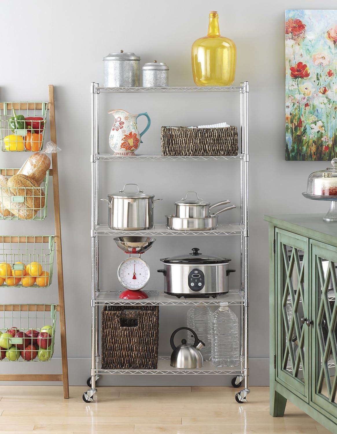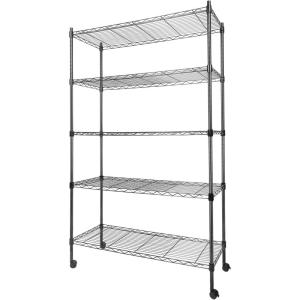Whitmor 3-Wire Shelving Unit, Metal Storage Shelves, Easy Assembly Home Organizer for Pantry, Kitchen, Garage, Plant(5-tier 30″l X 14″w X 60″h (With Wheels))