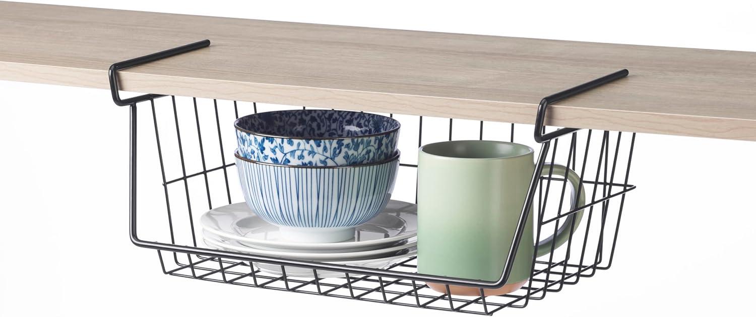 Whitmor Storage Cubes – Stackable Interlocking Wire Shelves -Black (Set of 4)(Black)