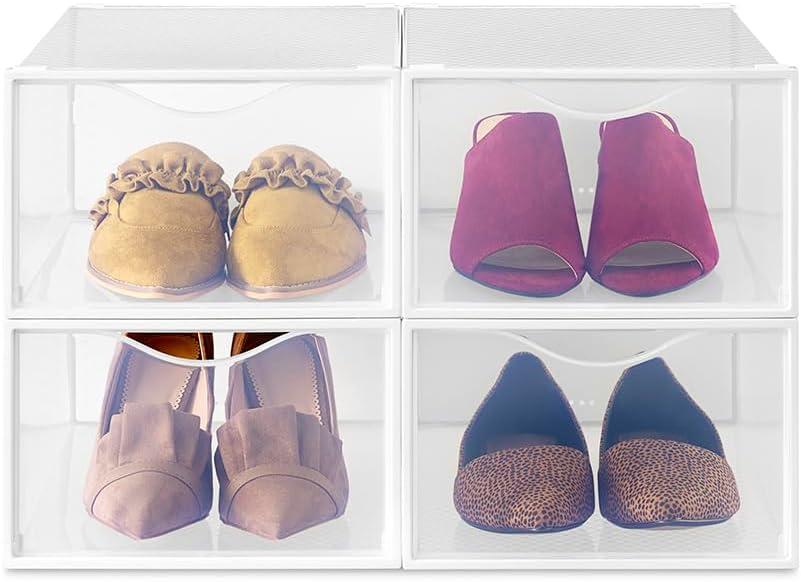 Whitmor Clear Vue Women’s Shoe Box, Set of 4, White, 4 Count(Set of 2)