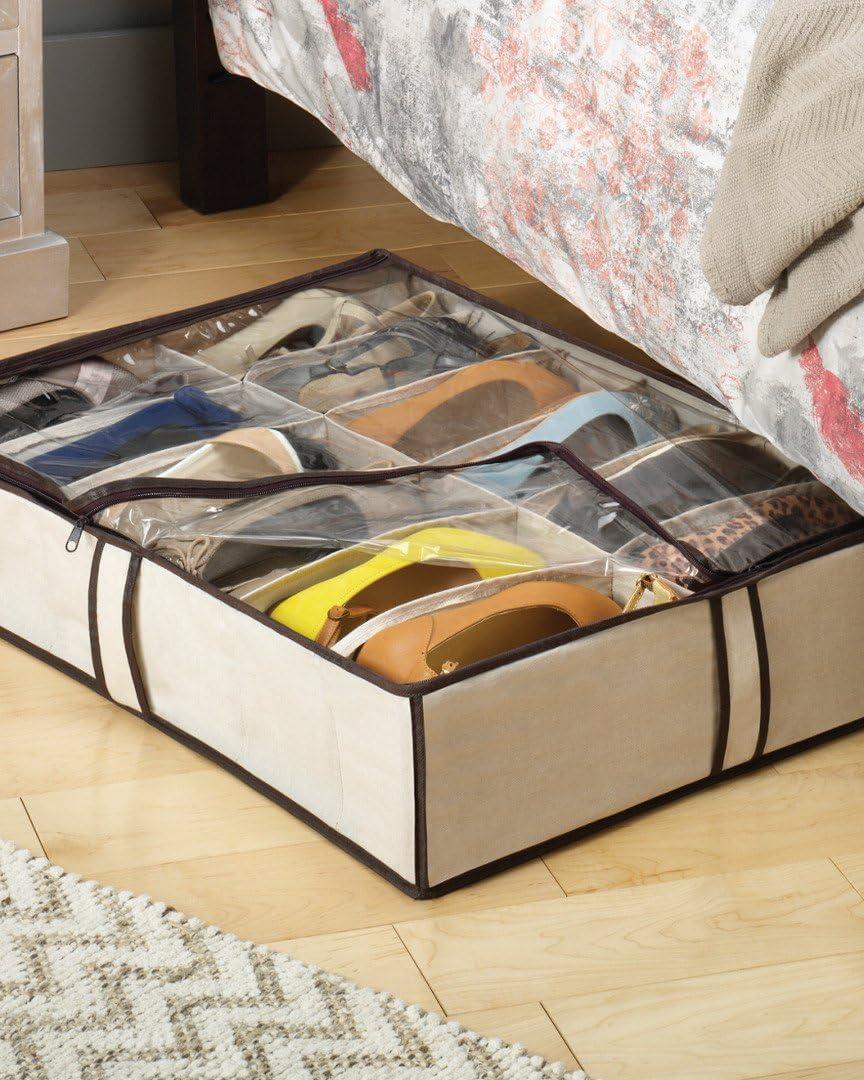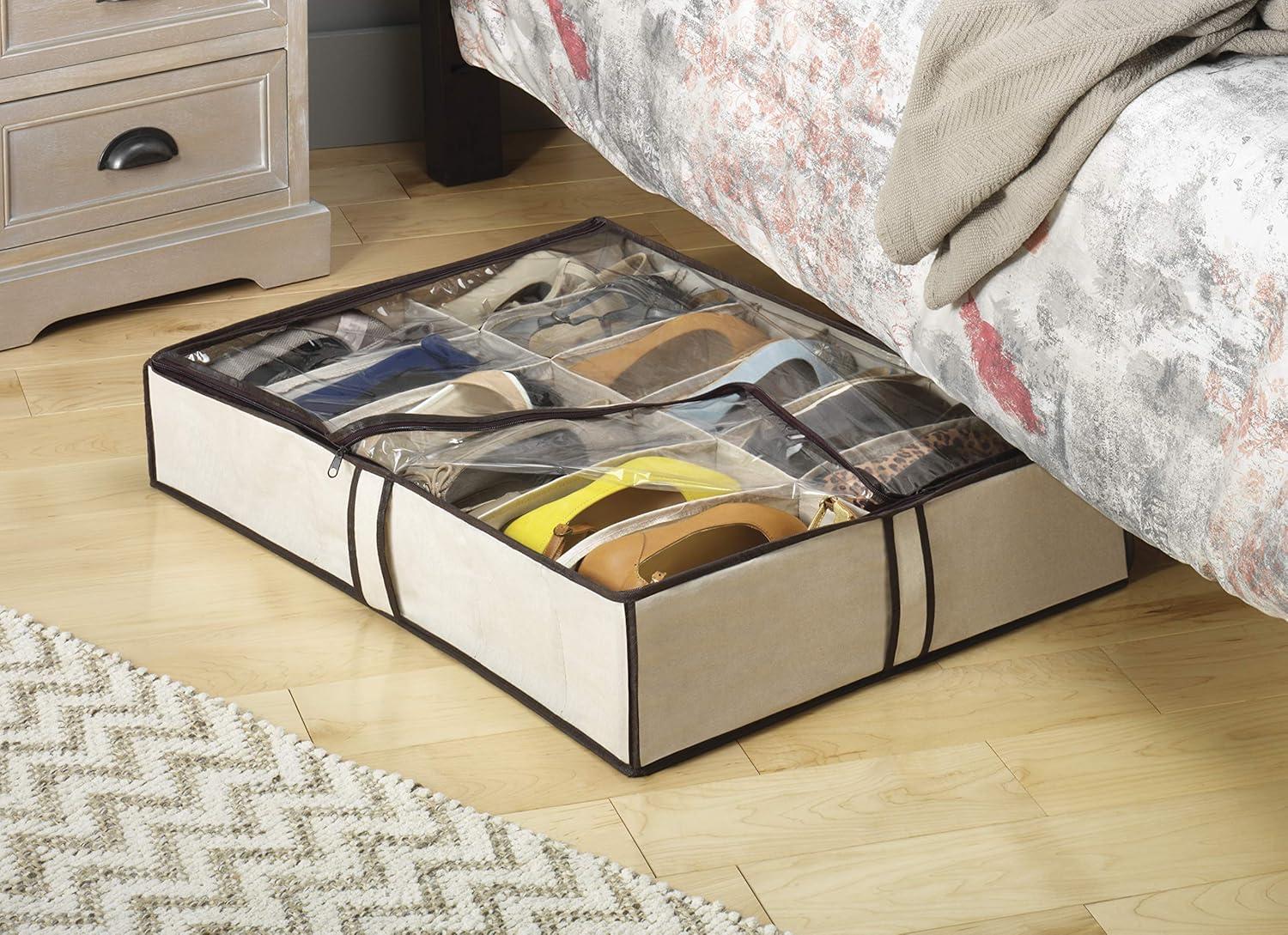 Whitmor Heavy Duty Canvas 12 Section Under Bed Shoe Bag(Beige & Espresso)