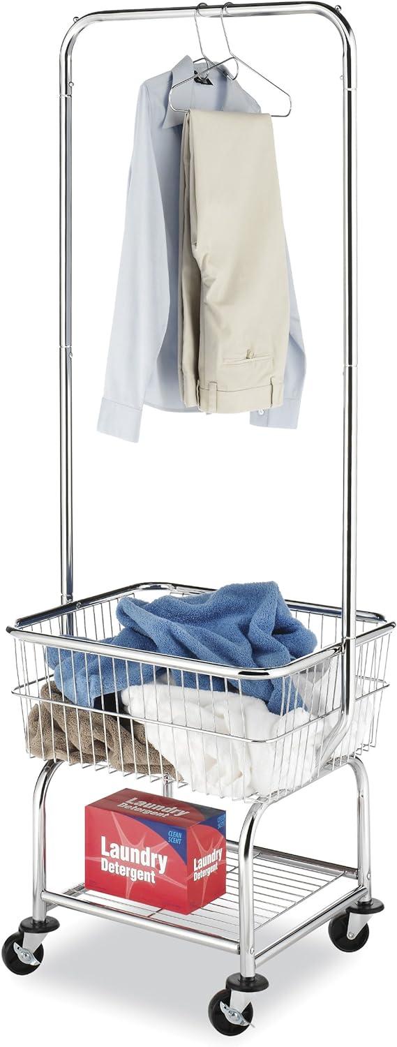 Whitmor Round Commercial Laundry Hamper with Removable Liner and Heavy Duty Wheels -Chrome (6894-3499-BB)(ROLLING LAUNDRY BUTLER)