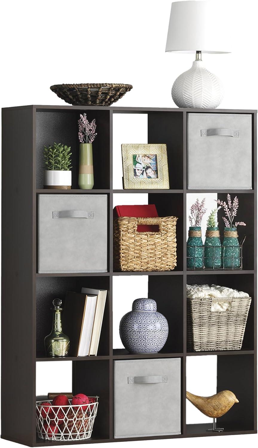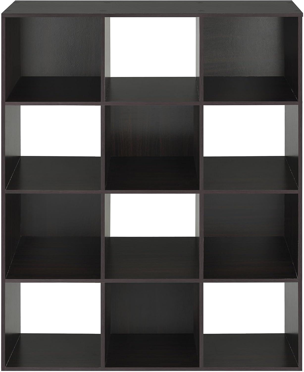 Whitmor 12 Cube Storage Organizer, 4 Tier Stackable Mdf Wood Bookcase, Open Storage Display Bookshelf, Storage Cabinet for Living Room, Bedroom, Home, Office, 35.1″L x 11.6″W x 47.5″H, White(Espresso)