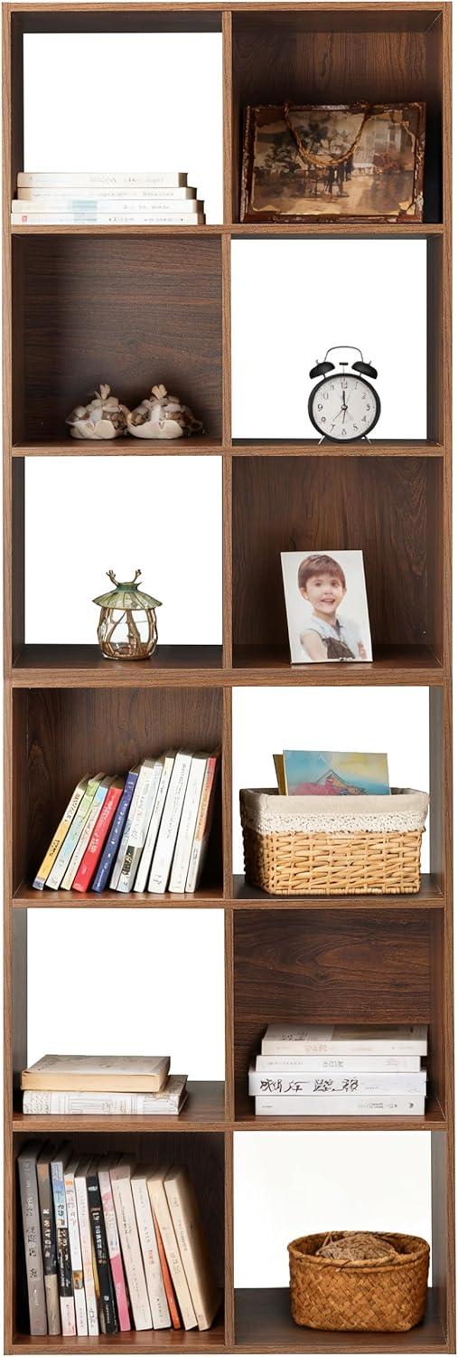 Whitmor 12 Cube Storage Organizer, 4 Tier Stackable Mdf Wood Bookcase, Open Storage Display Bookshelf, Storage Cabinet for Living Room, Bedroom, Home, Office, 35.1″L x 11.6″W x 47.5″H, White(Walnut)