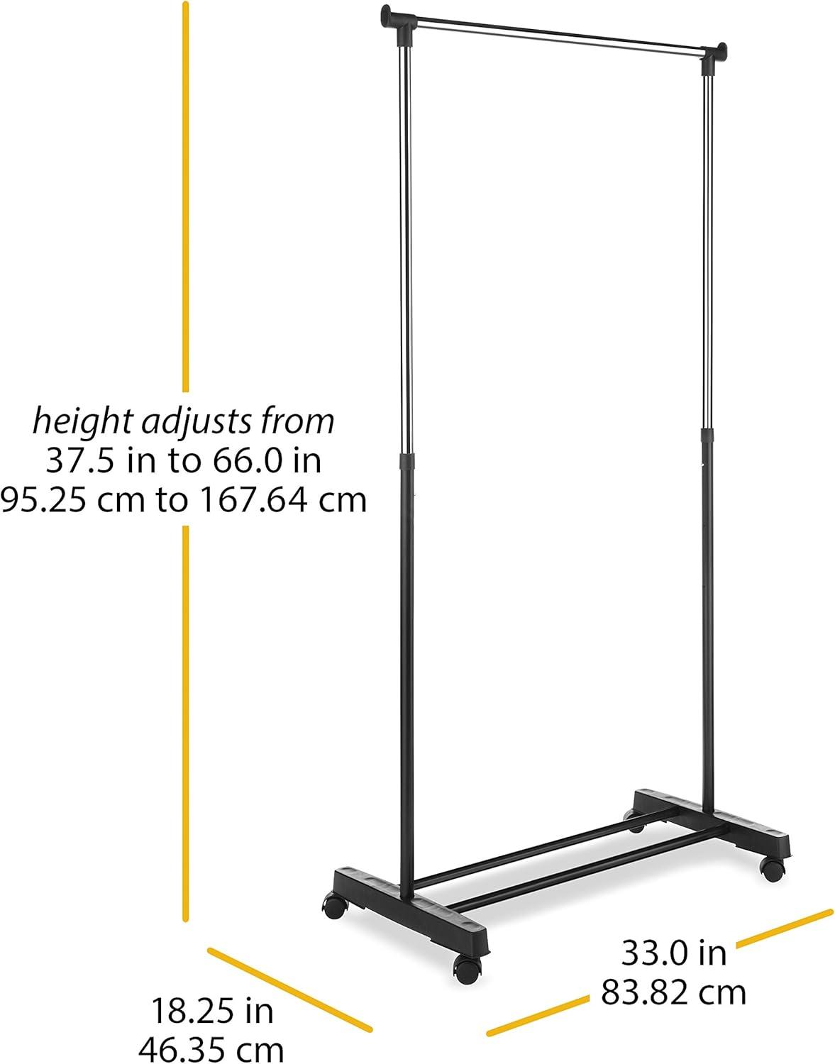 Whitmor Adjustable Garment Rack Rolling Clothes Organizer, Black and Chrome