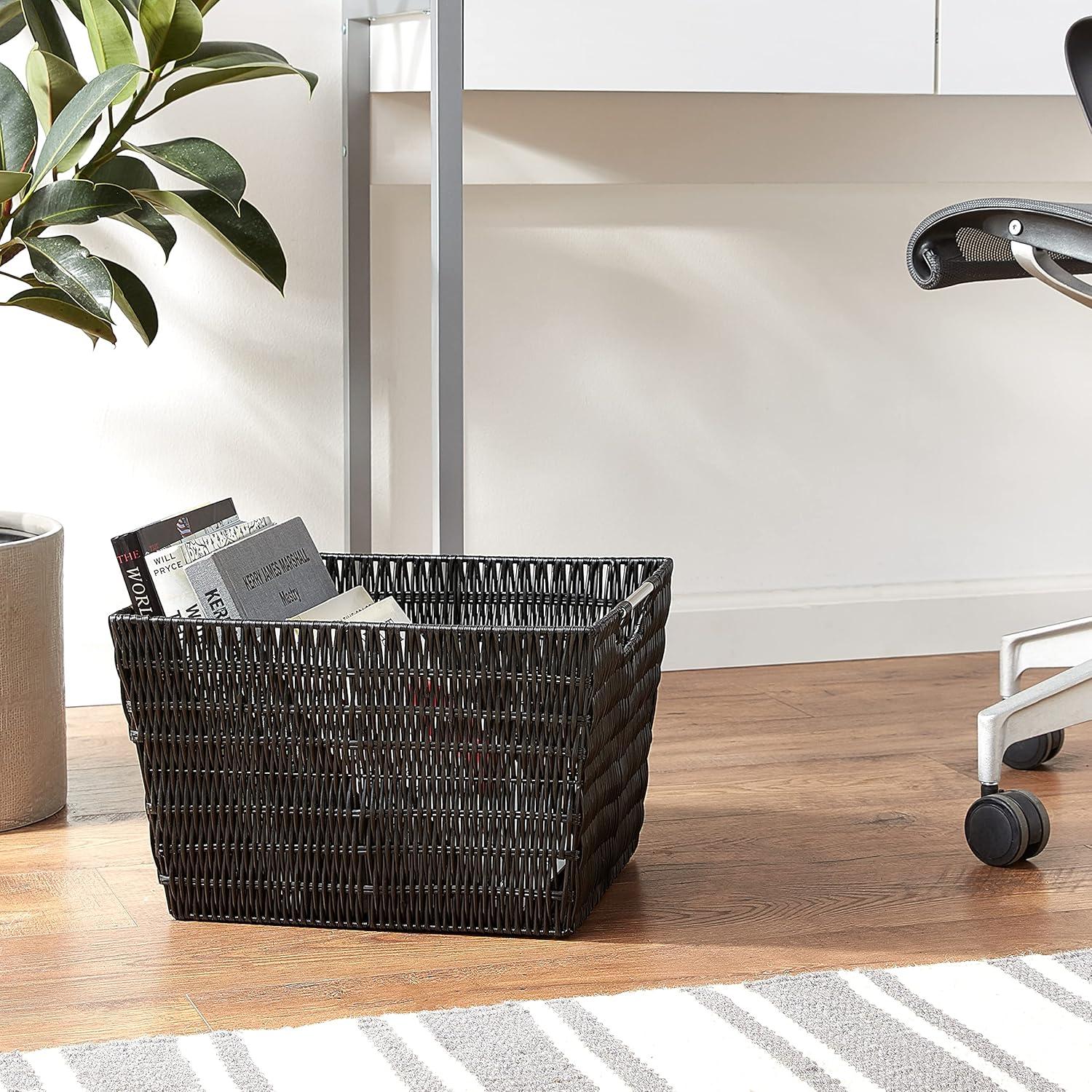 With warm colors and classic elegance, Rattique Storage Totes offer storage and organization to any decor in any room of the house. Perfect for towels in the bathroom, socks in the laundry, or magazines in the living room. Rattique Storage Totes are completely versatile. Featuring durable, smooth, wipe-clean woven plastic that doesn't snag fabrics and integrated handles for easy carrying, they look like rattan, yet last like resin.