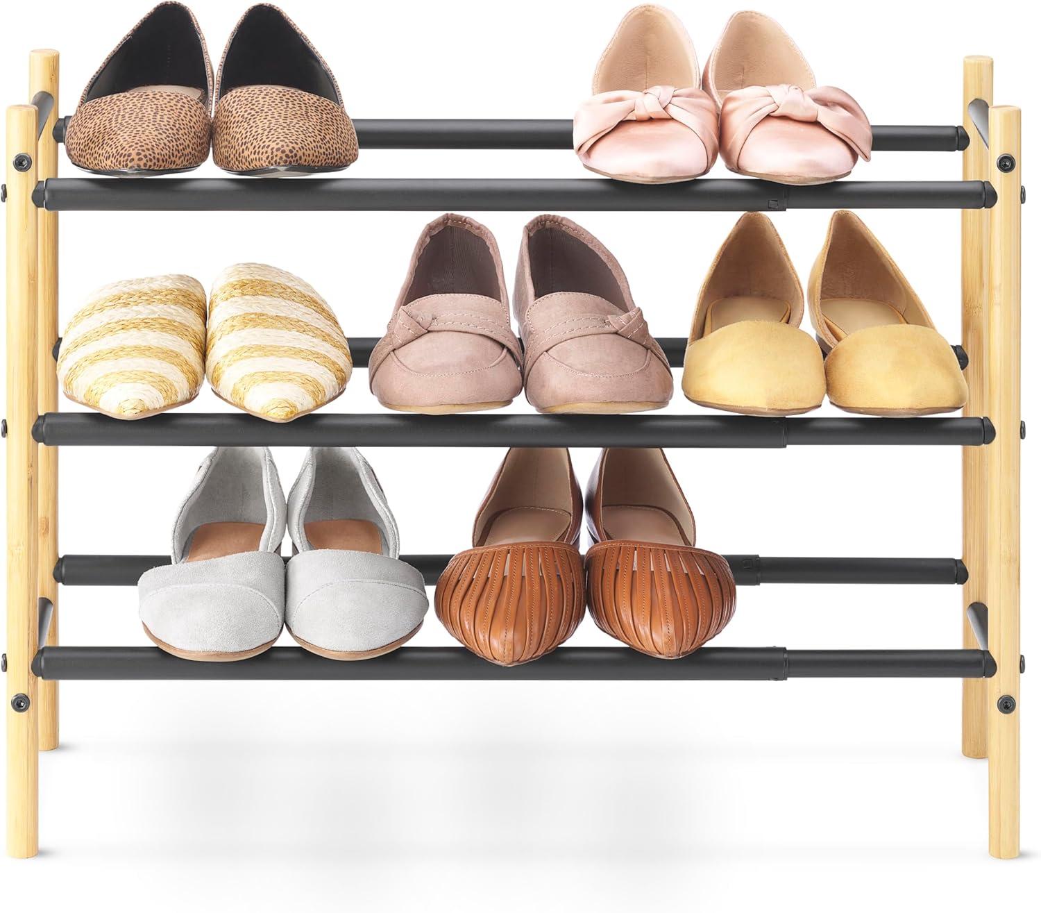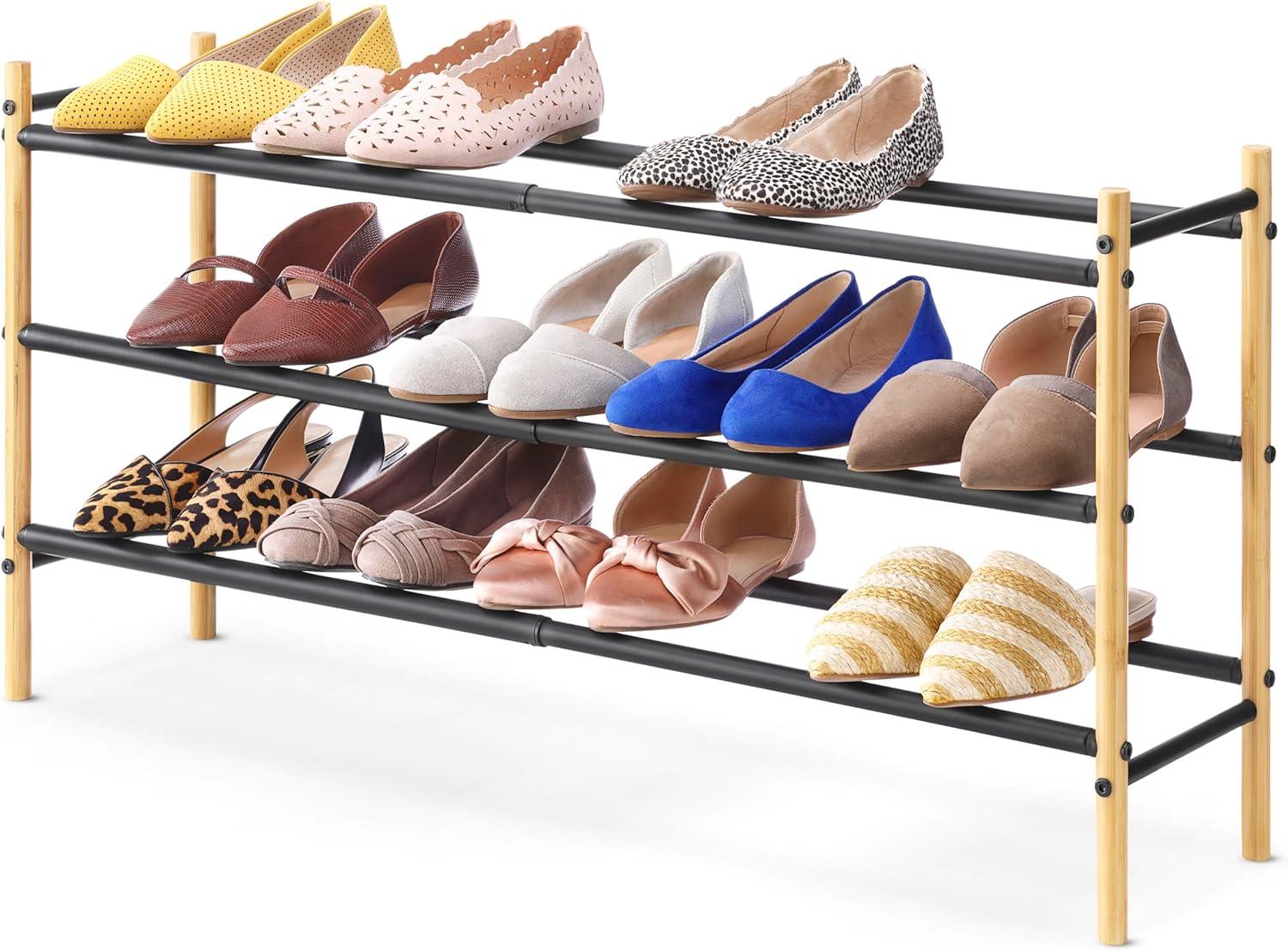 Whitmor 10 Tier Shoe Tower, 50 Pair, Chrome(3-tier bamboo & Matte Black)