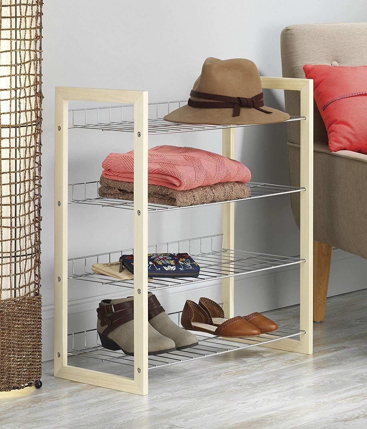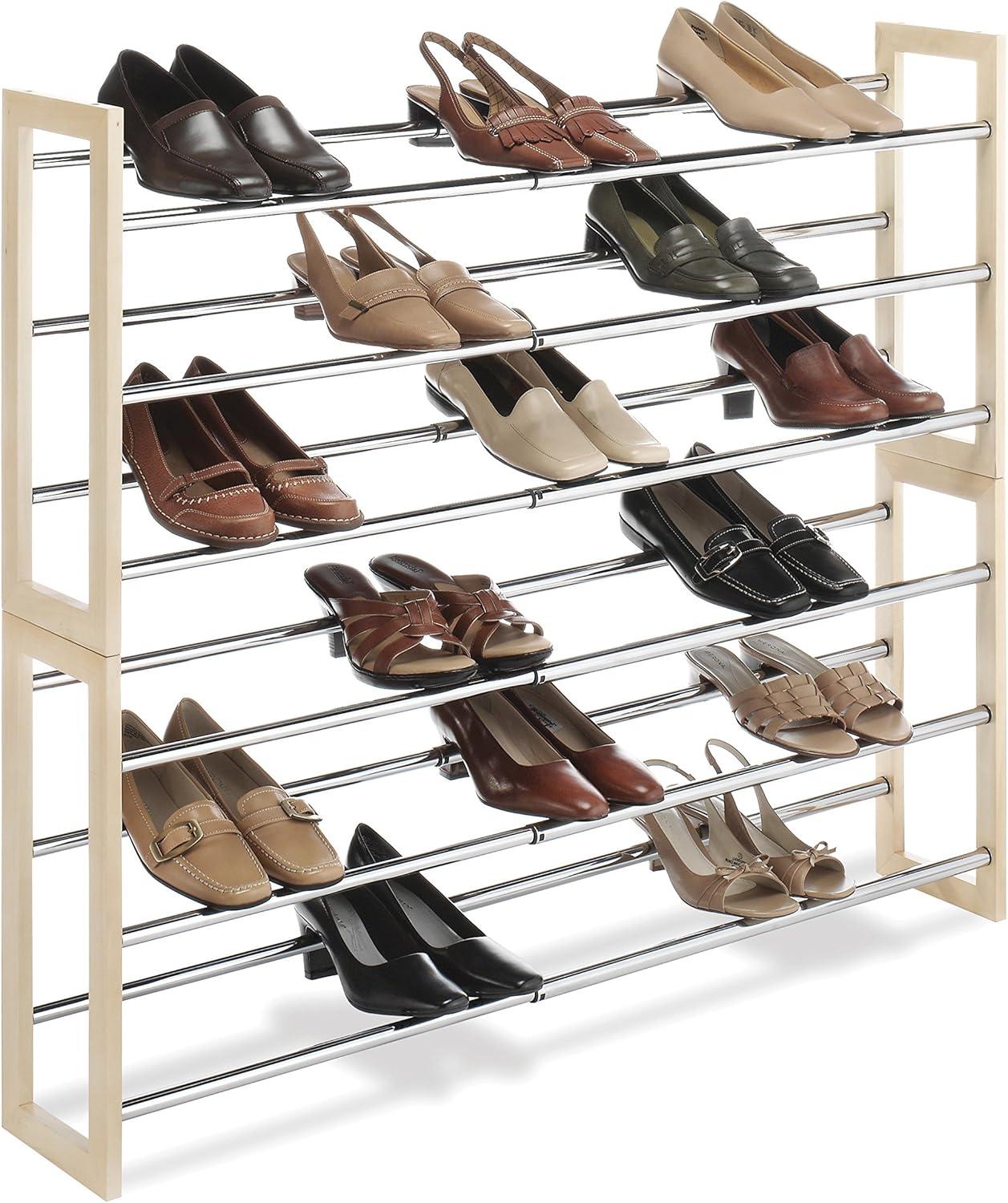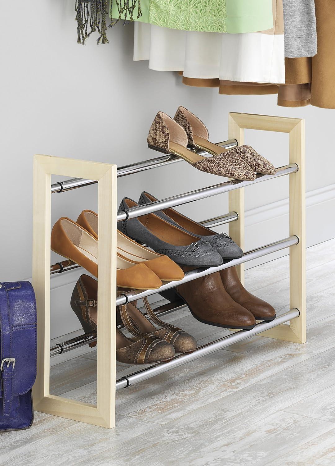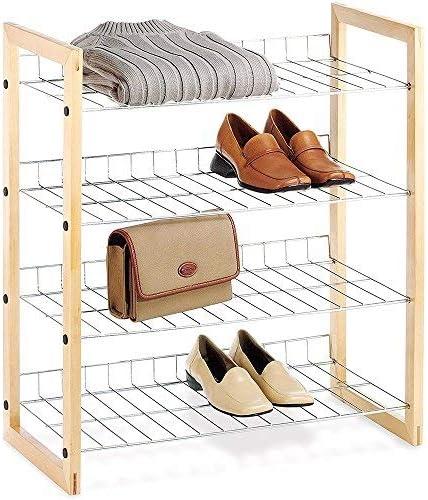 Whitmor 10 Tier Shoe Tower, 50 Pair, Chrome(4-tier natural Wood and Chrome)