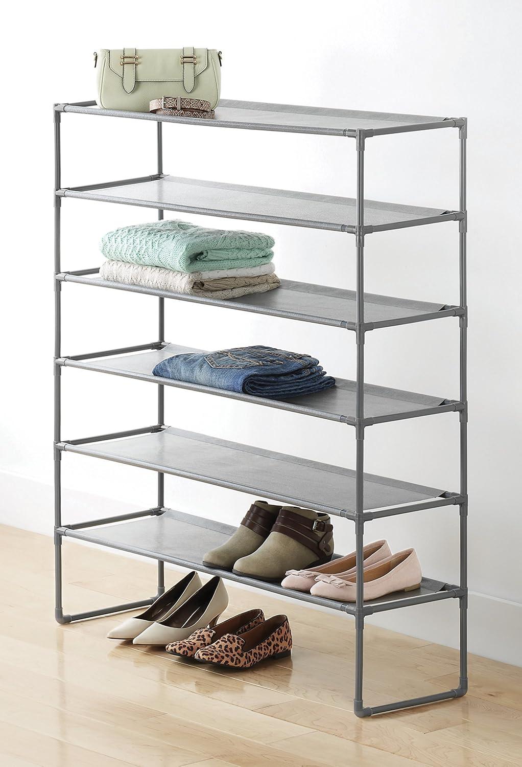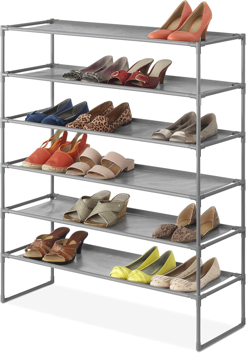 Whitmor 10 Tier Shoe Tower, 50 Pair, Chrome(6-tier gunmetal Gray)