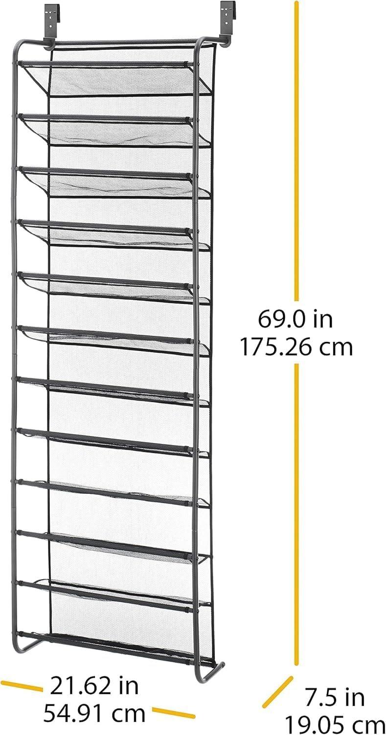 Whitmor 18 Pair Over The Door Shoe Organizer, 6 Tier Heavy Duty Metal Shoe Organizer for Closet, Hanging Shoe Rack for Closet Organizer & Storage, 42″ L x 22.7″ W x 7.5″ H, Gunmetal Gray(24 Pair Grey)